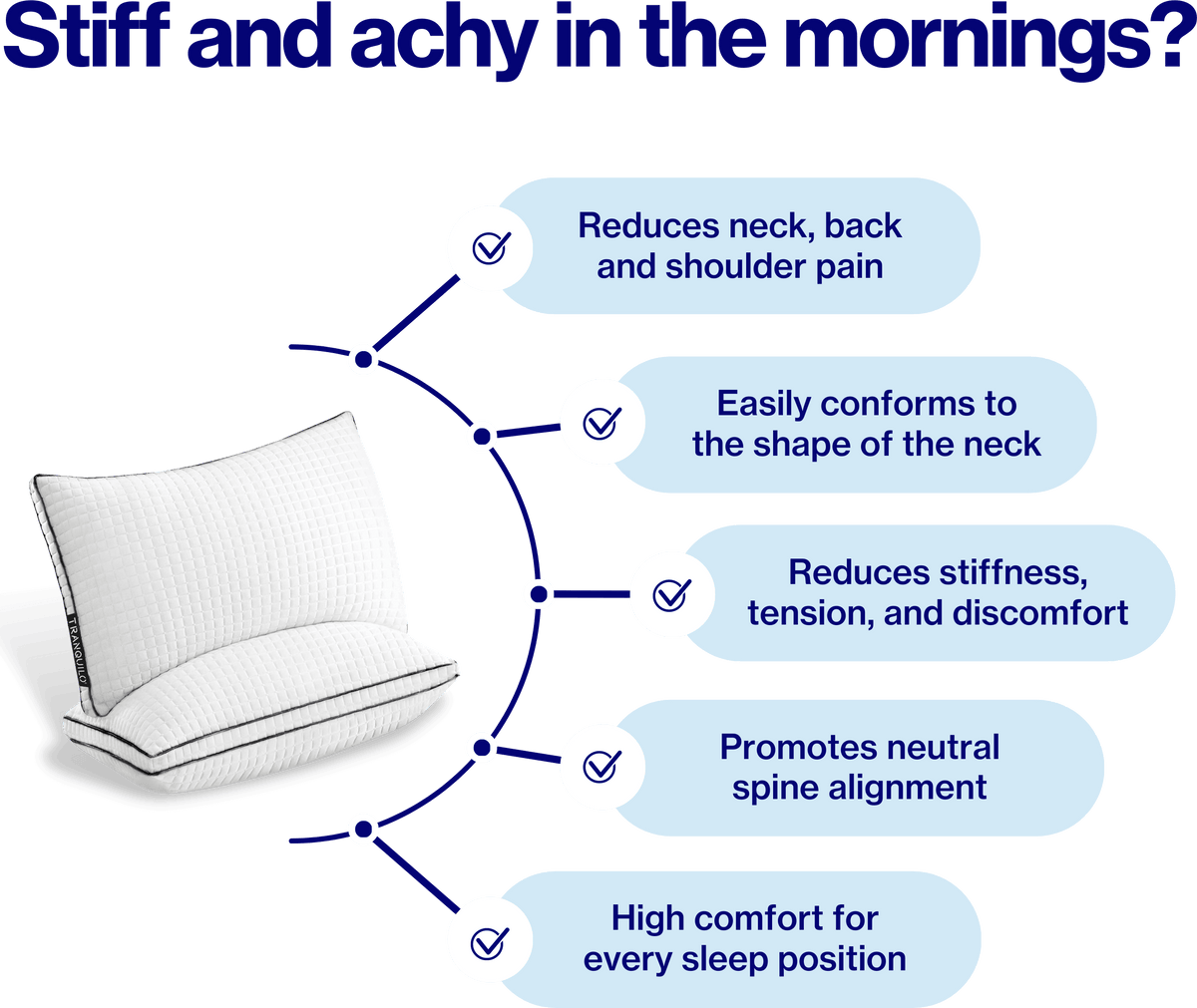 Memory foam fully molds to your body due to body heat and weight. This reduces pressure on your neck, back, and shoulders, providing complete muscle relaxation. This ensures you sleep comfortably and with minimal tossing. Additionally, shredded memory foam allows air circulation, preventing the pillow from becoming too warm or too cold. The addition of gel has an extra cooling effect. We chose a blend of shredded memory foam and microfiber because it is firmer, allowing the pillow to retain its shape even after years of use.
