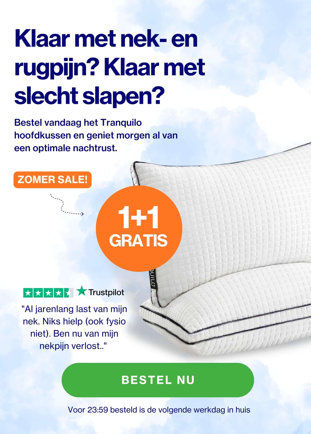 Ervaar het zelf! Upgrade je slaapkwaliteit met het hoofdkussen van Tranquilo.